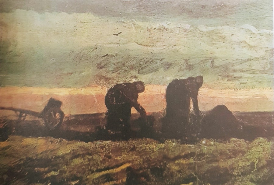 토탄을 줍는 두 명의 농촌 여인 27.5 * 36.5cm 1883년 10월 캔버스에 유채