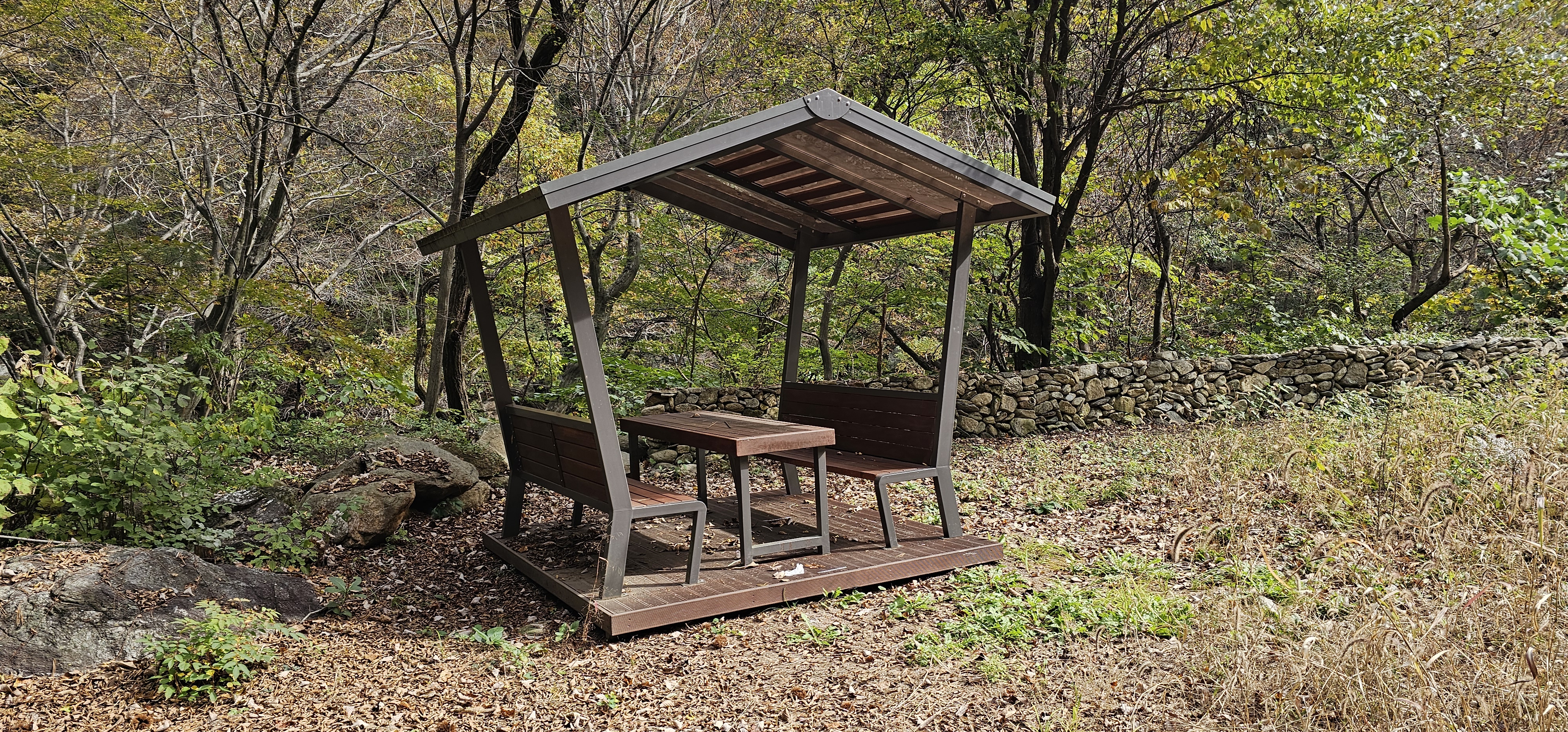 길이 없어진 줄 알고 걱정하다 이 쉼터를 보고 안심했다.