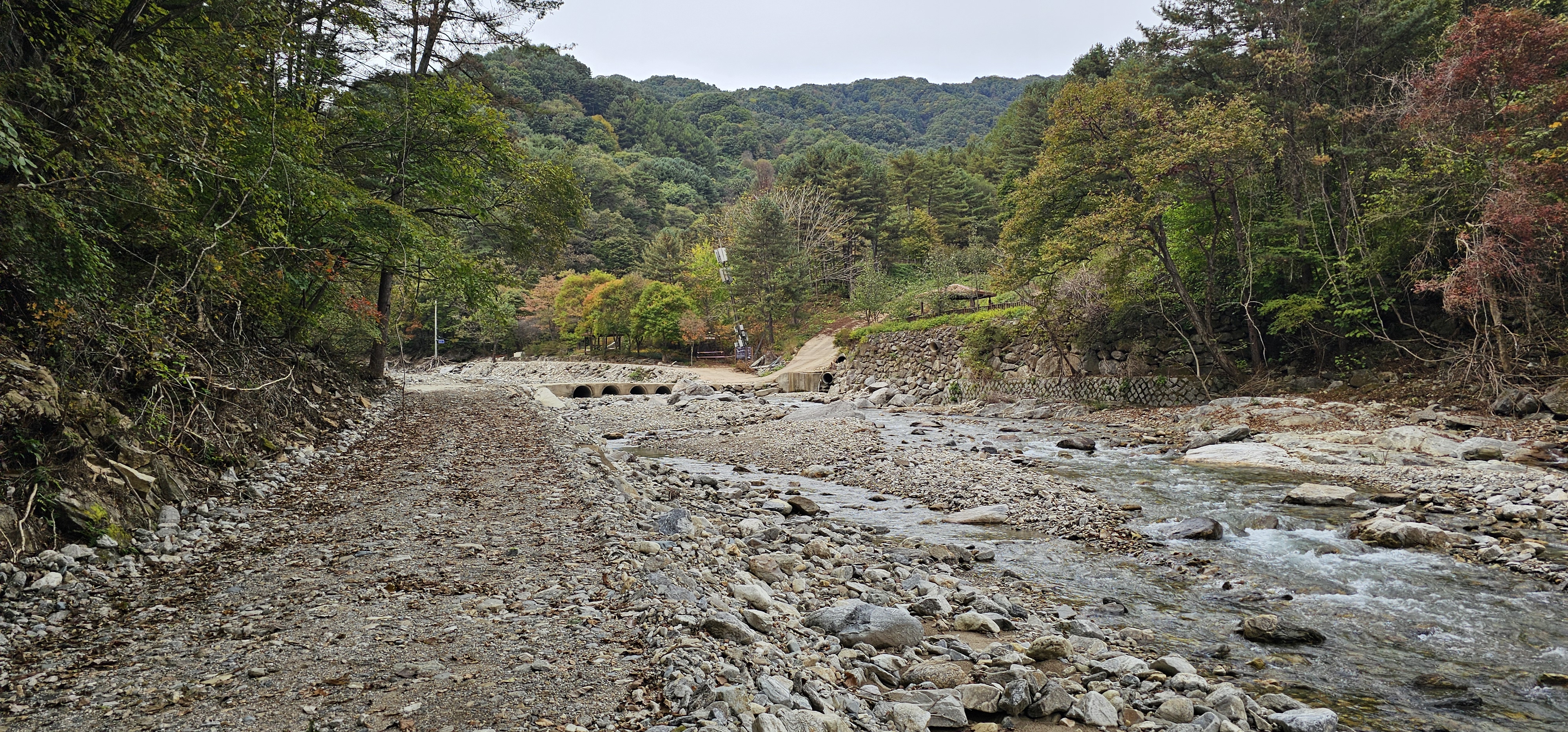 가을날 계곡으로는 보기 드물게 수량이 많다.
