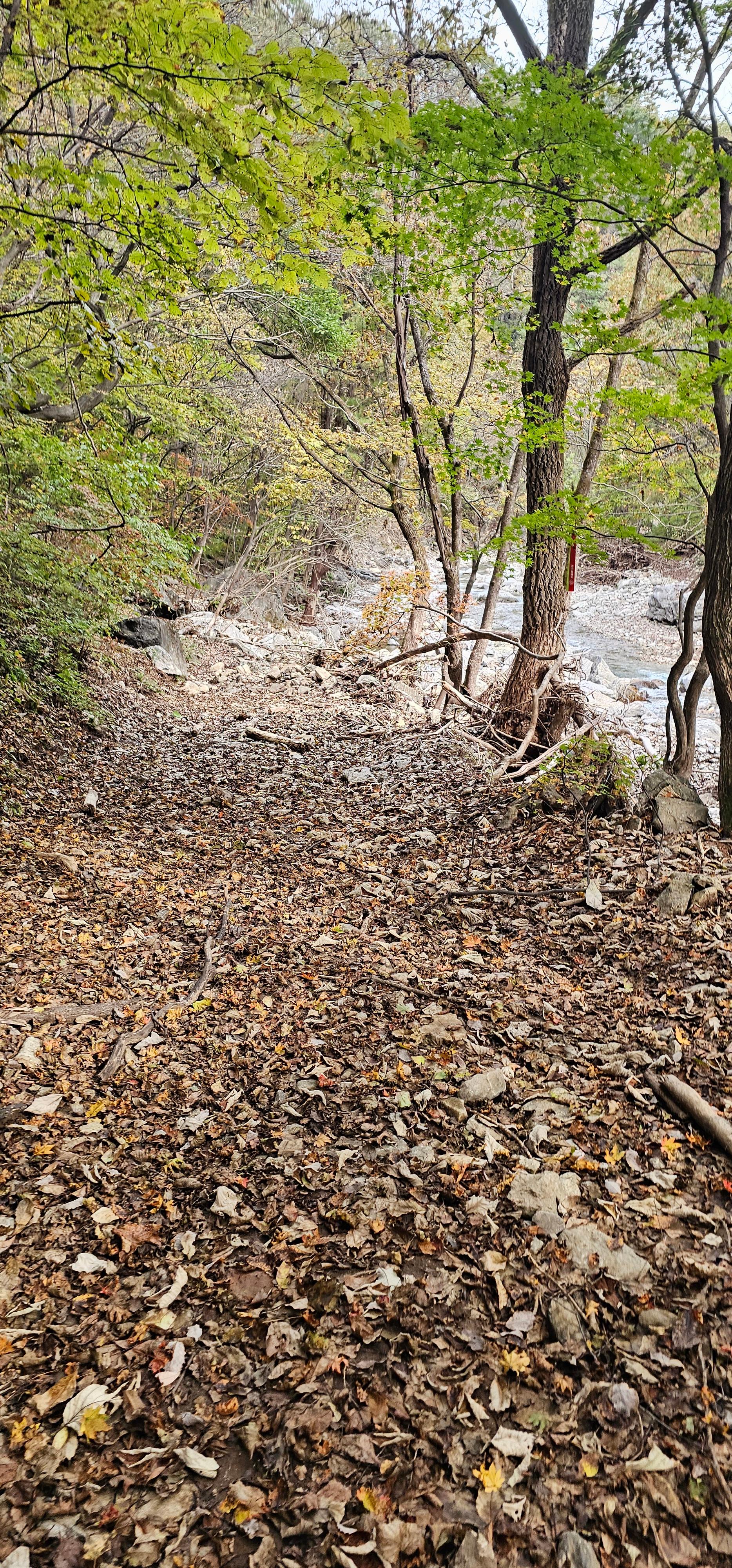 우리는 길이 너무 험해서 9곡 까지 가지 않고 2구간의 끝지점인 삼풍골 지나서 3구간의 개울 건널목 만나서 쉬다가 돌아왔다.