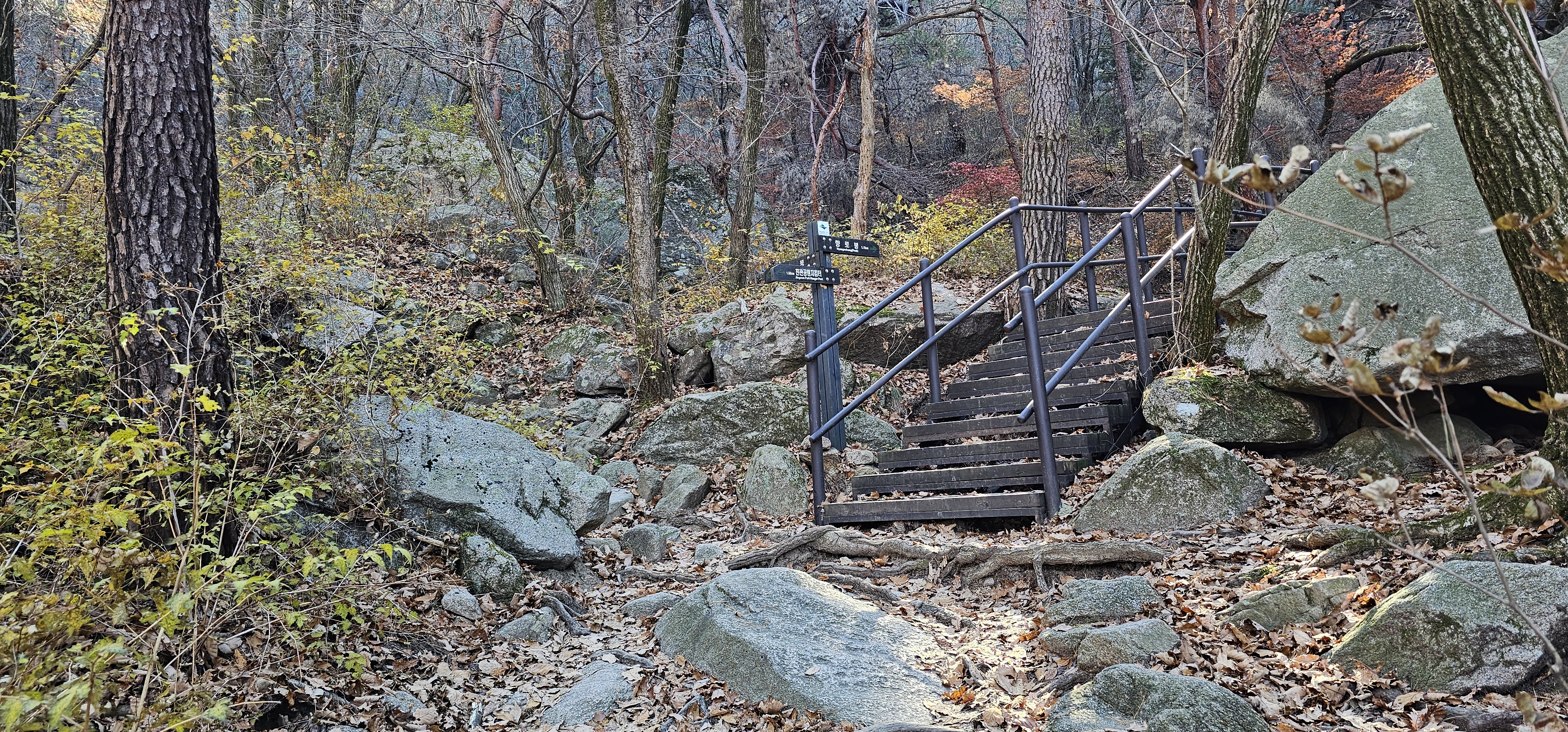 골짜기에 단풍은 거의 없지만 가을 날씨가 산행하기에는 아주 알맞았다.