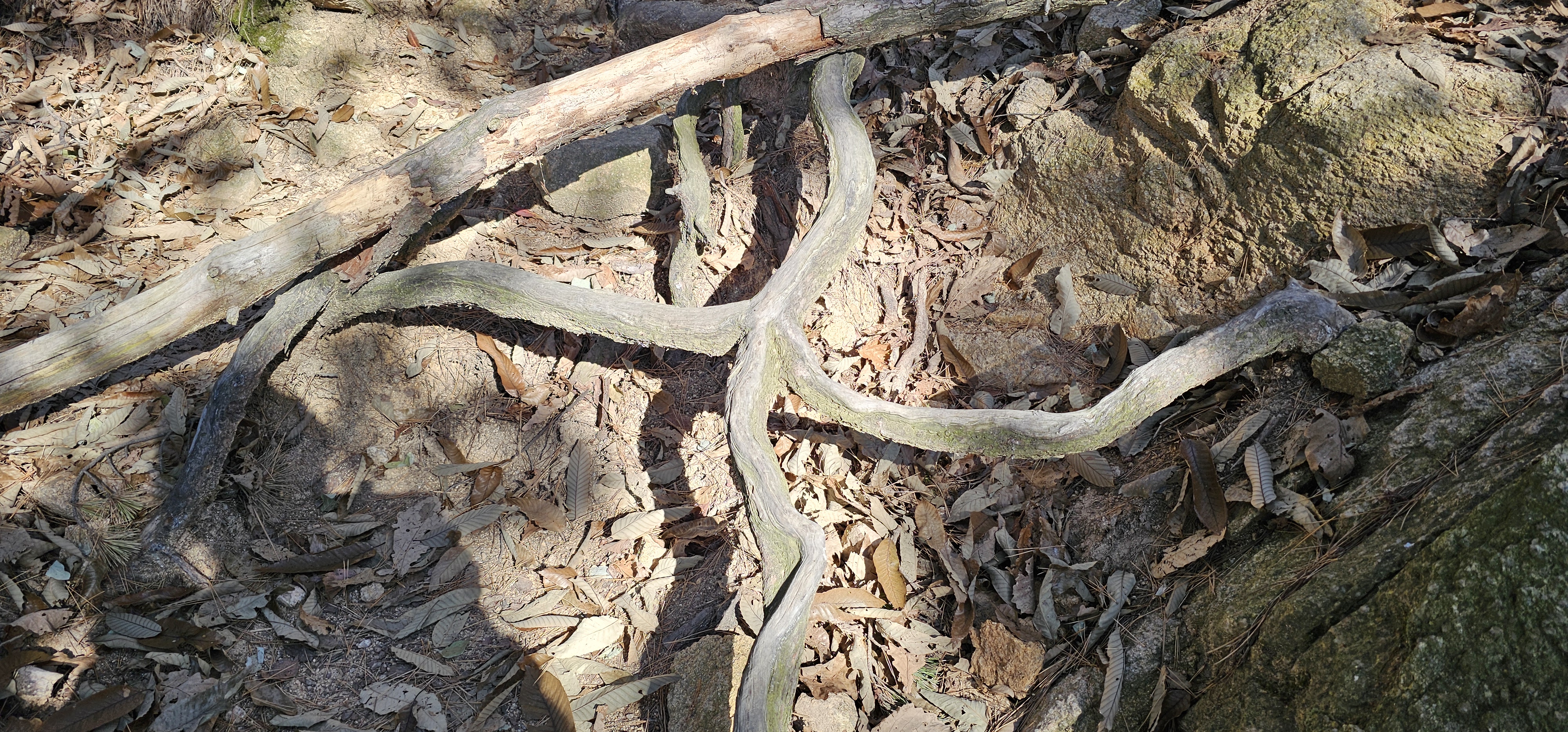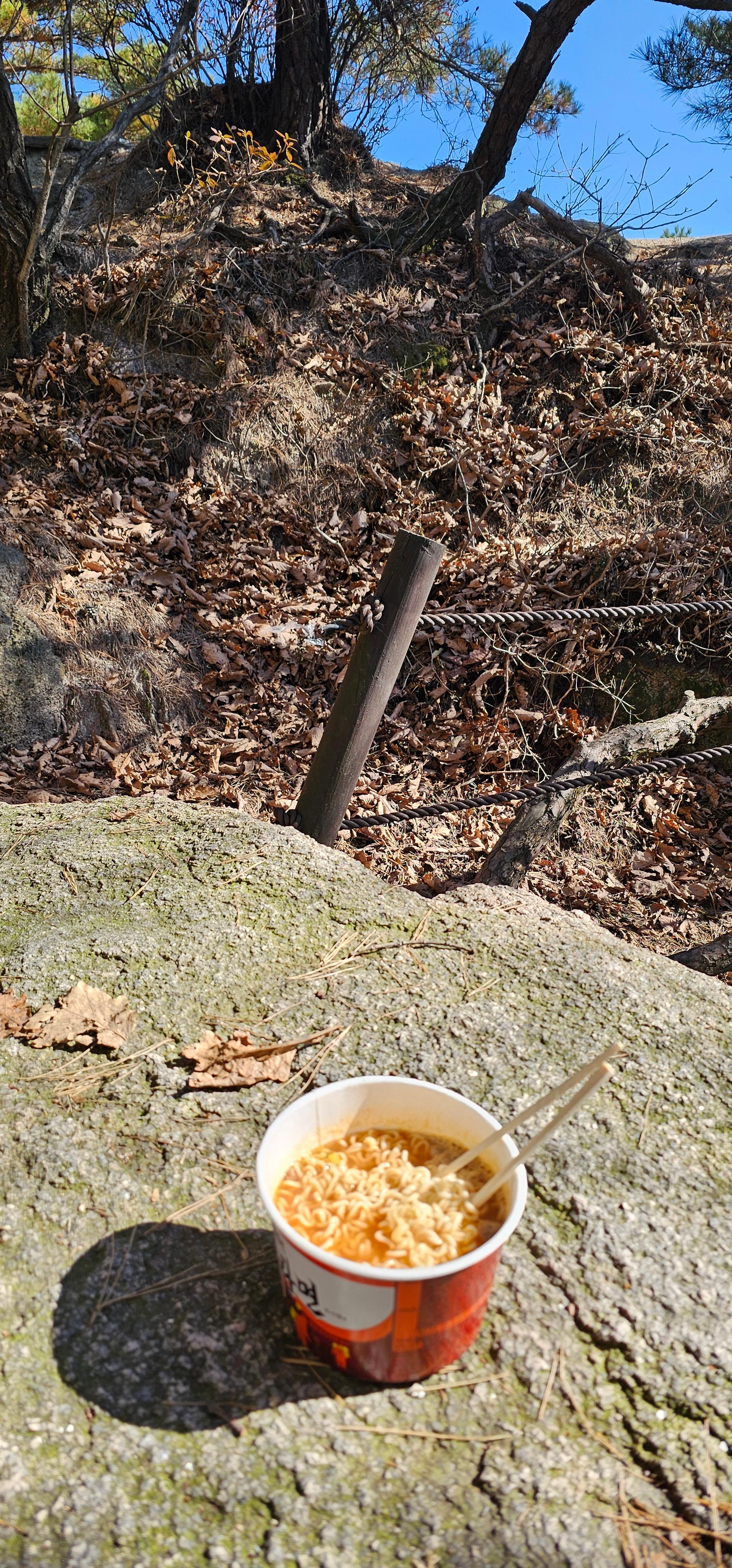 사모바위 앞 내 아지트에서 준비해 간 컵라면으로 점심을 먹고 잠깐 쉬다가 응봉능선으로 내려왔다.