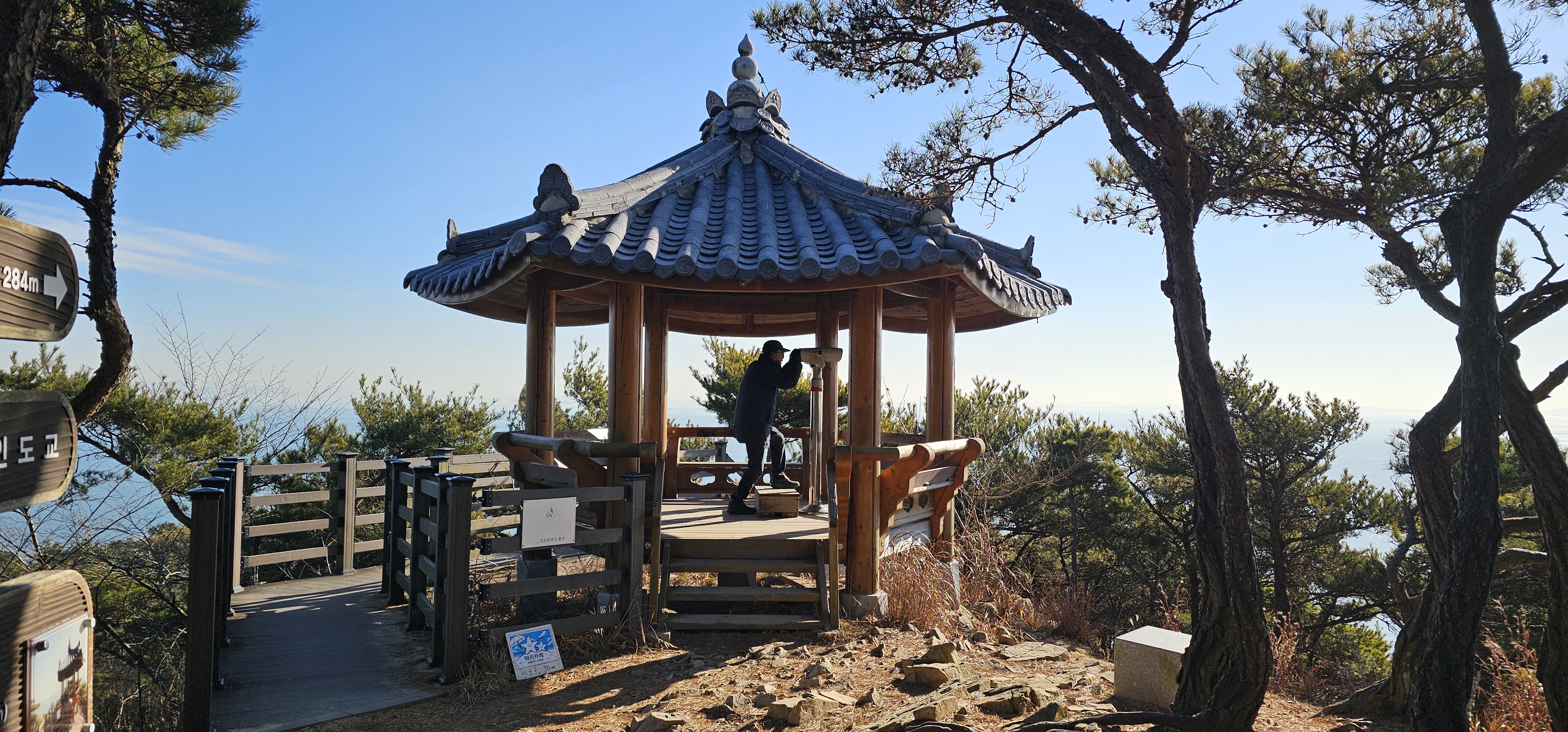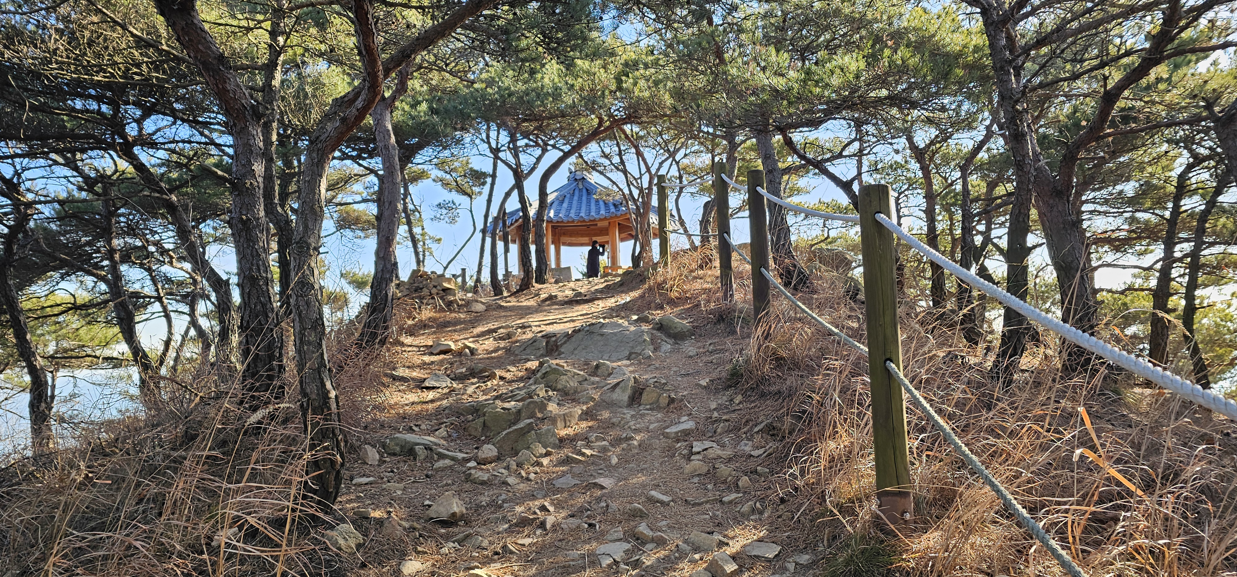 이 계단으로 올라가면 이 섬에서 가장 높은 봉우리인 74m 높이의 안산 정상에 있는 하도정이란 정자에 도착합니다.