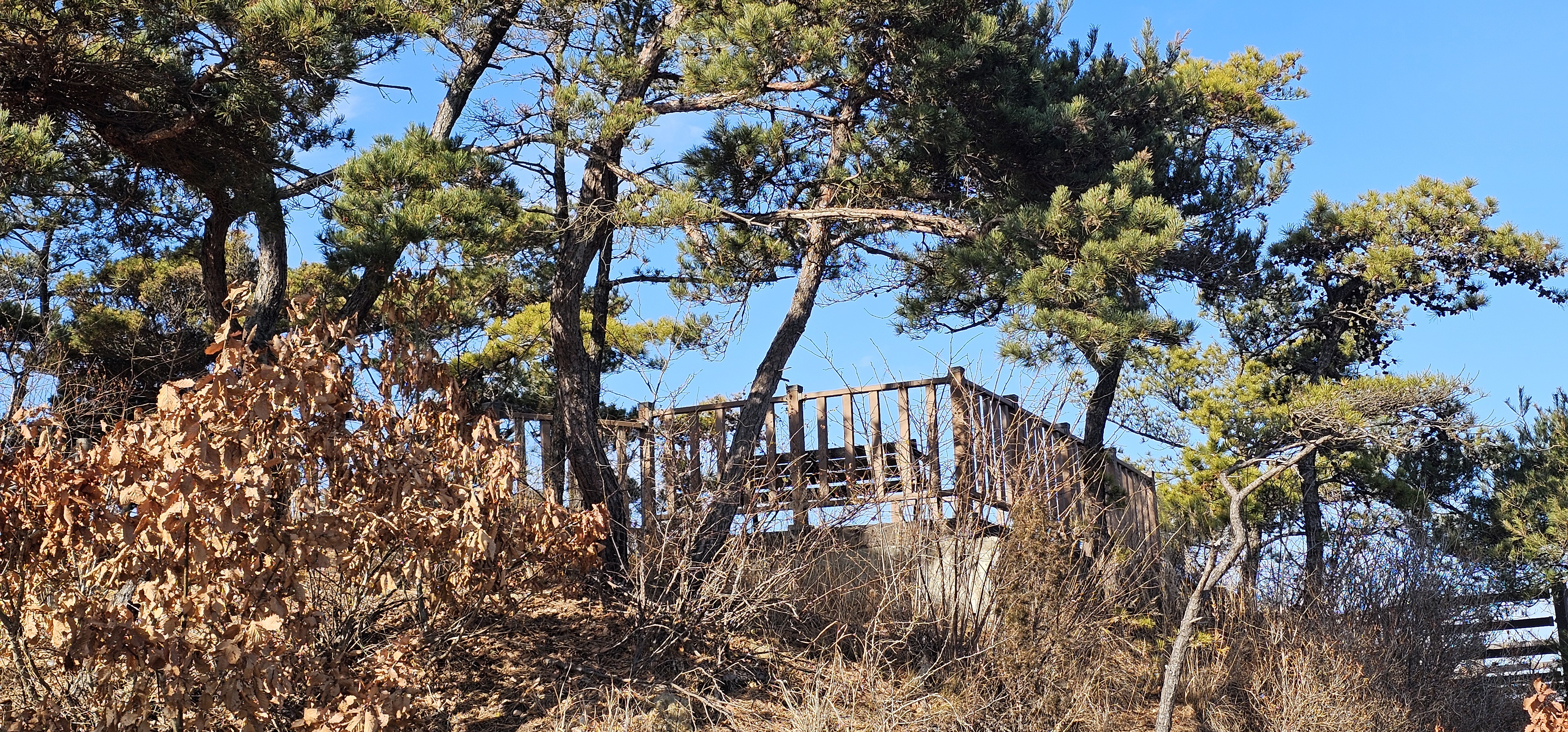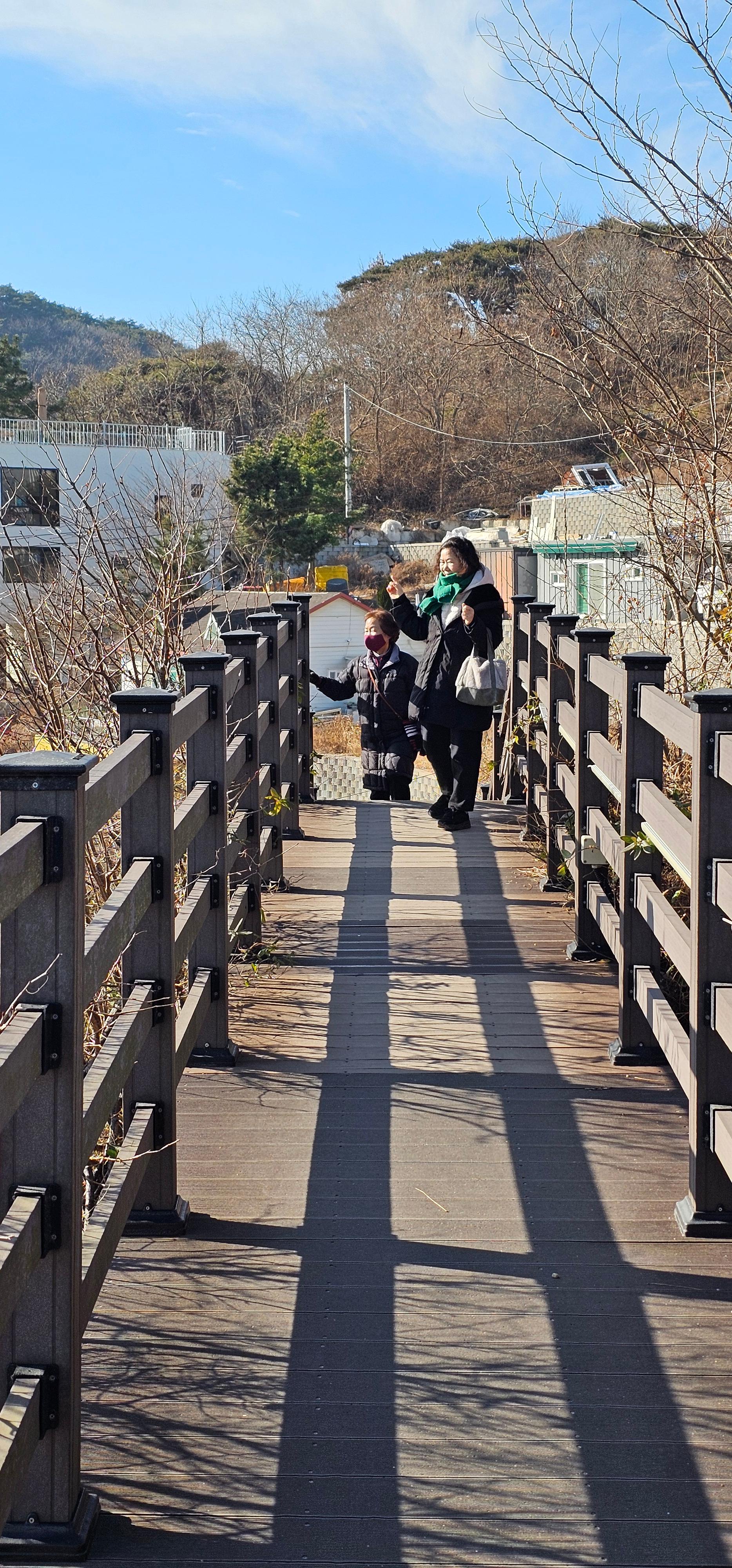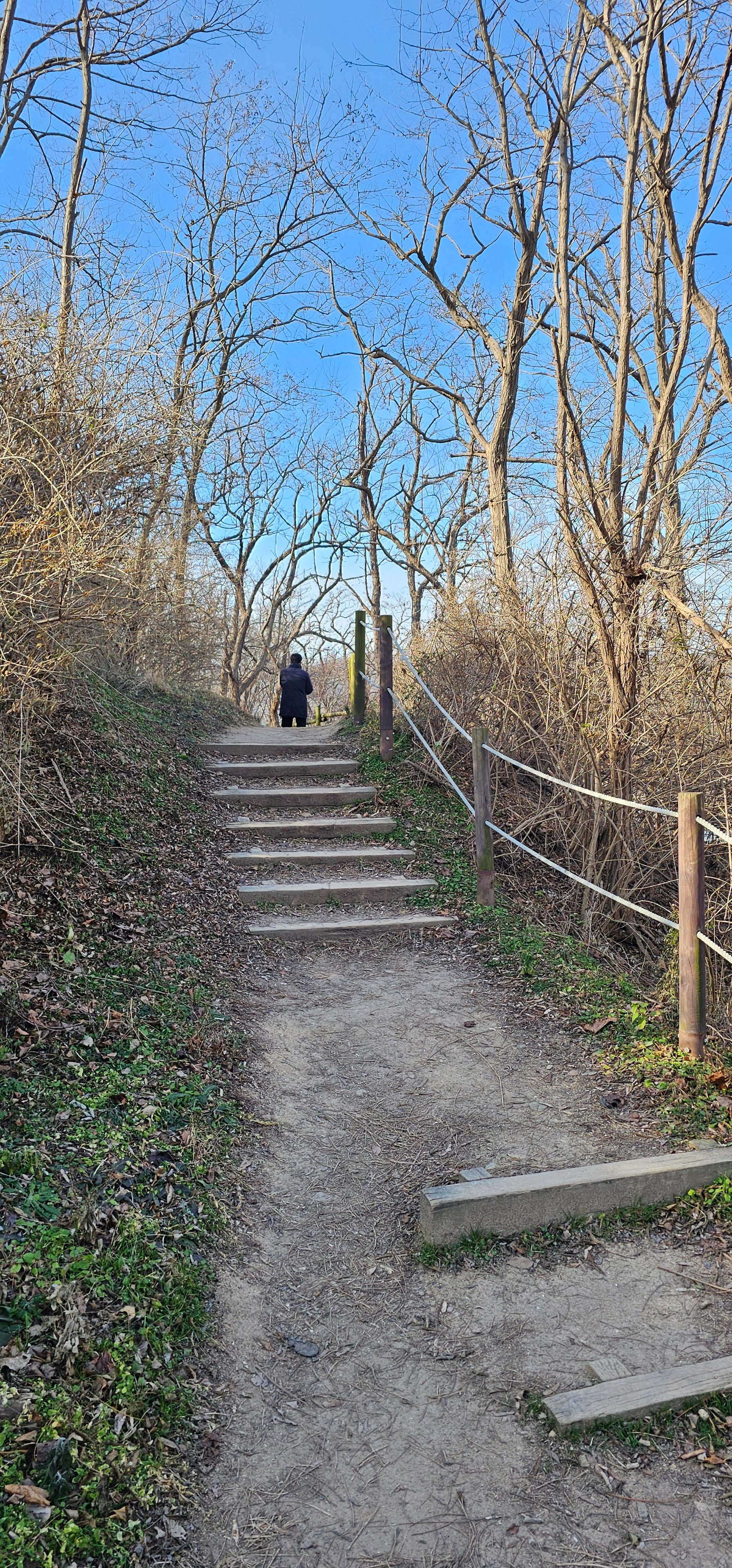 우리는 인도교 건너기 전에 주차하고 건너가서 바로 산으로 올라갔습니다.