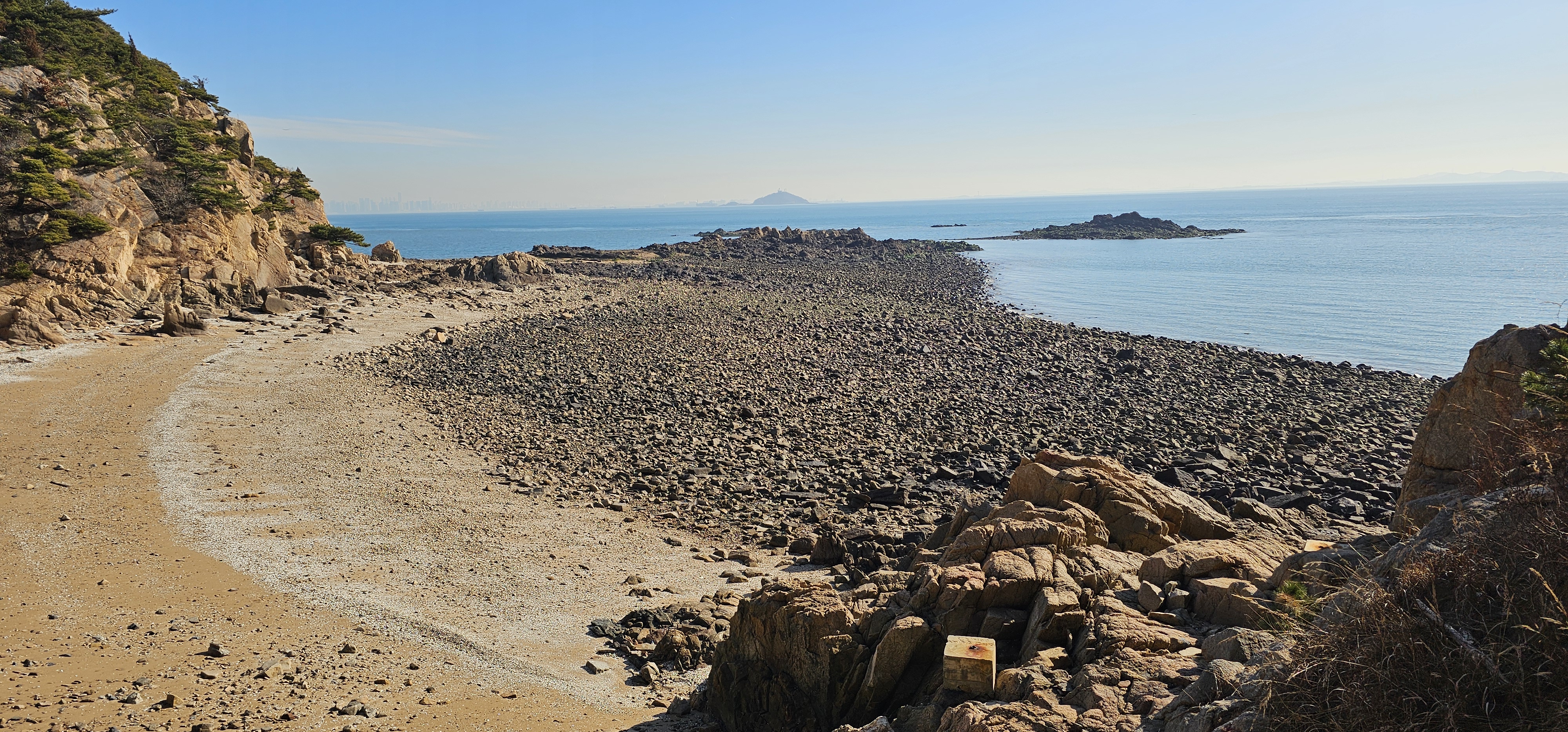 썰물 때는 건너편 산으로 올라가지 않고 바닷가 길로도 갈 수 있습니다.
