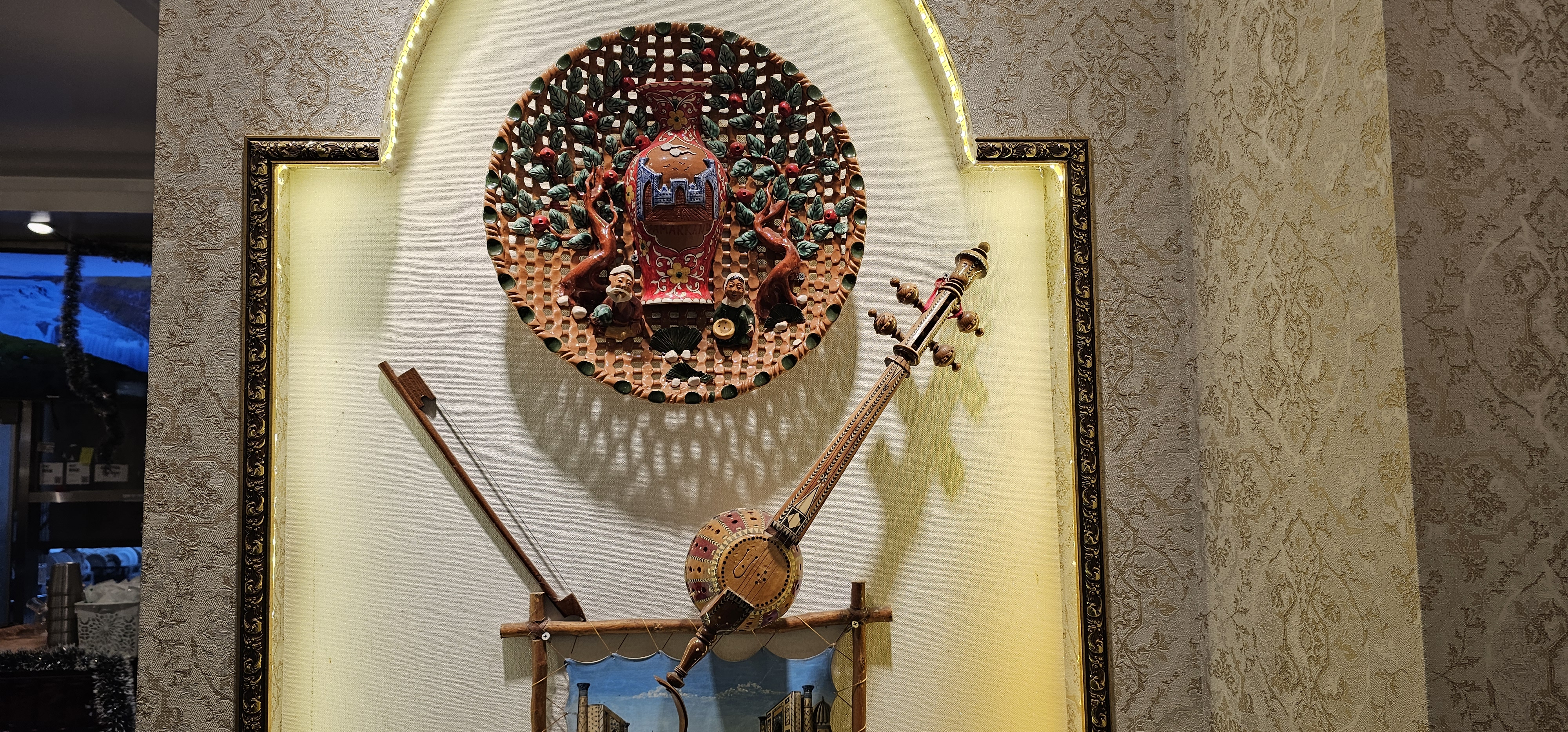 음식점에 전시해 둔 가지악 이라는 중앙 아시아 악기입니다.
