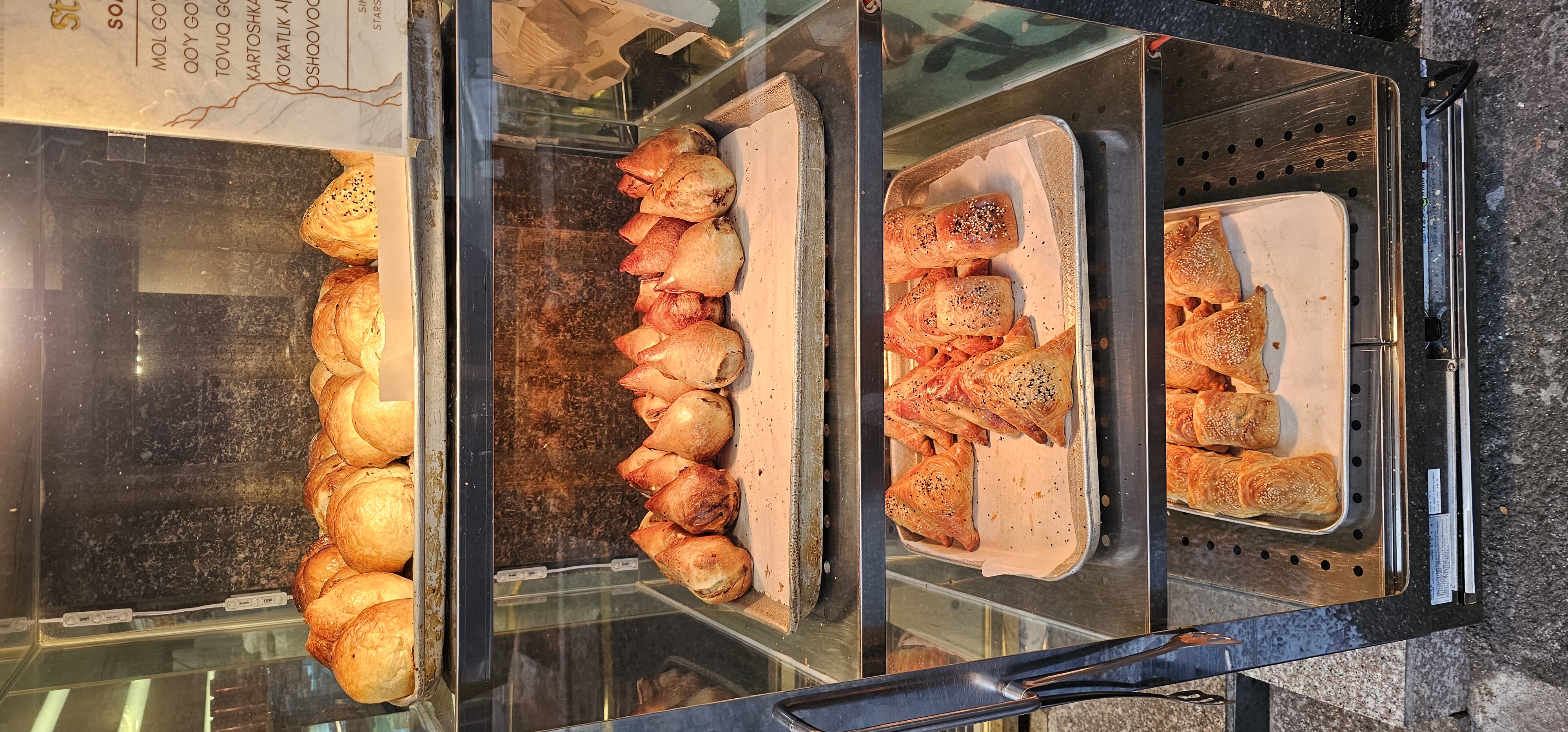 삼사(Samsa) 또는 솜사(Somsa)라고 불리는 우즈베키스탄의 전통 빵입니다.