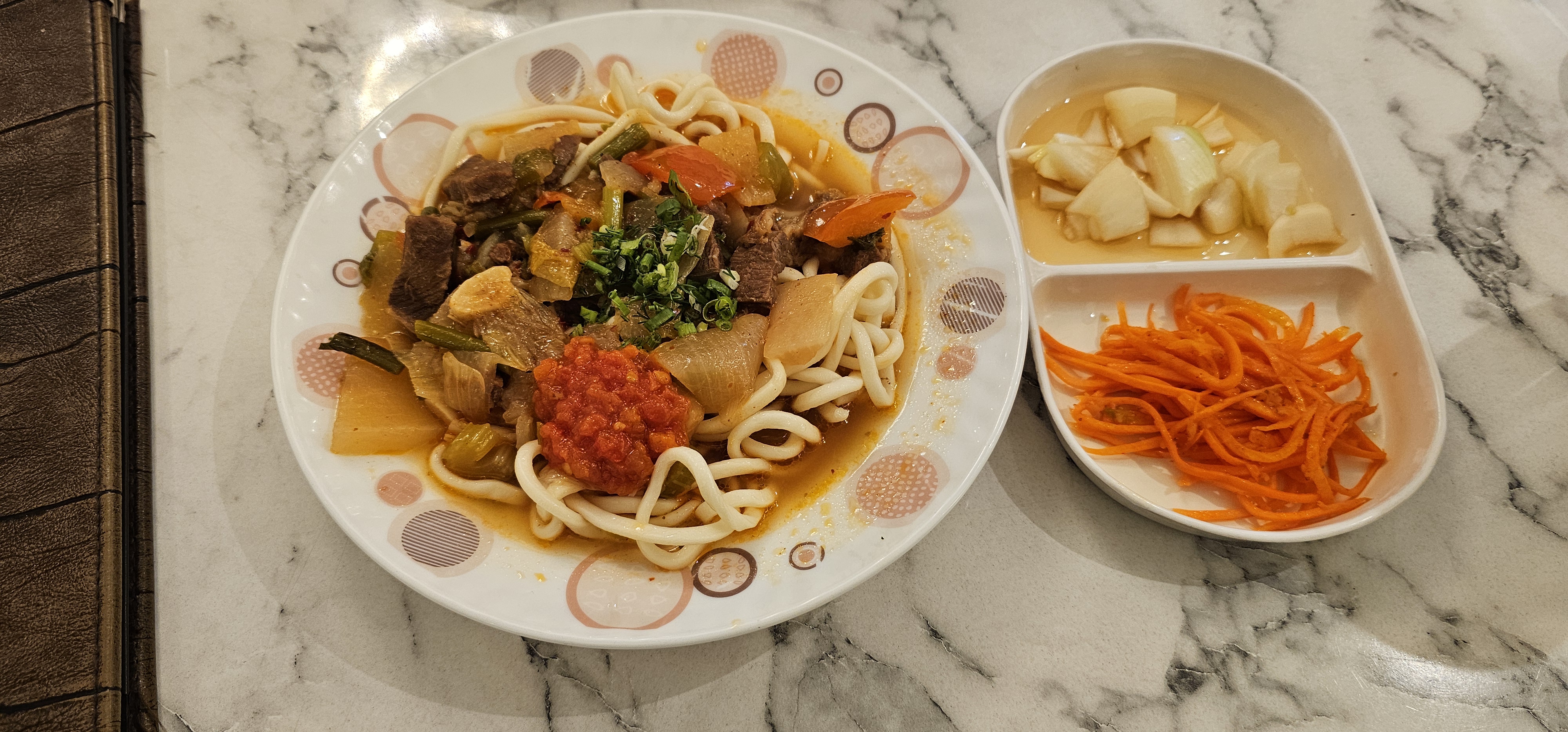 💡 팁: 라그만을 먹을 때 '라자(Laza)'라고 불리는 중앙아시아식 고추기름 다대기를 곁들이면 훨씬 칼칼하고 깊은 맛을 즐길 수 있습니다.