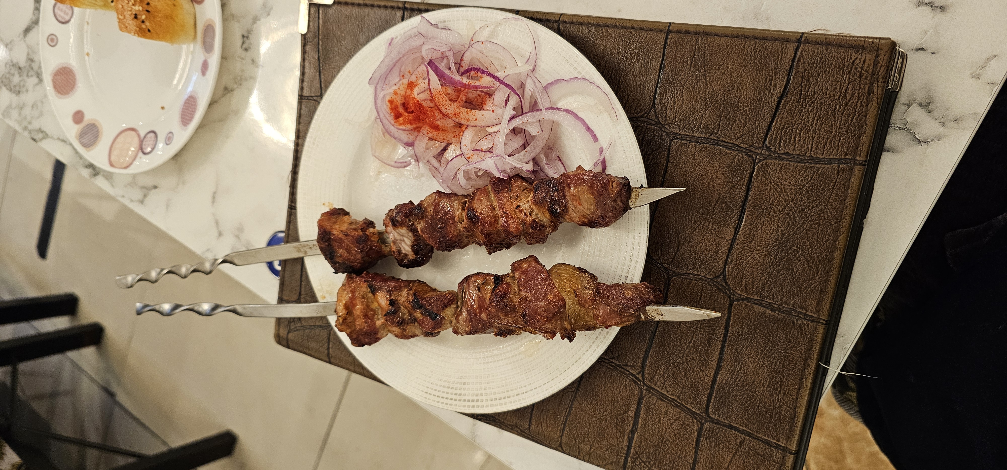 샤슬릭은 보통 식초에 버무린 생양파 슬라이스와 함께 제공되는데, 이는 고기의 기름진 맛을 잡아주는 역할을 합니다.