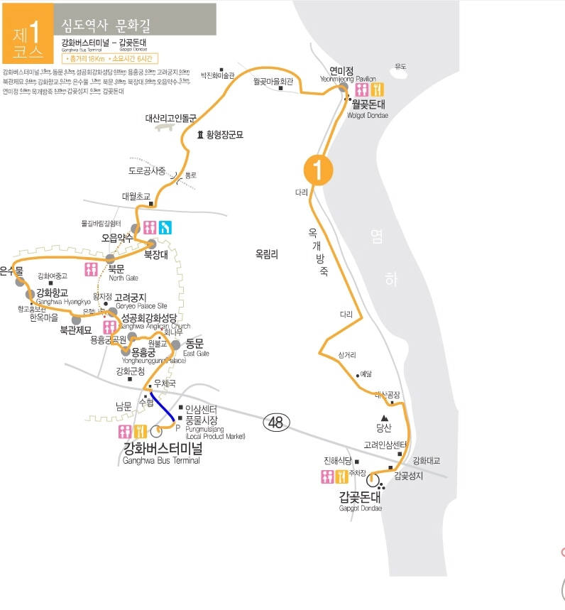 이 지도에서 보는 1코스 가운데 강화산성 동문에서 연미정까지만 걸었습니다
