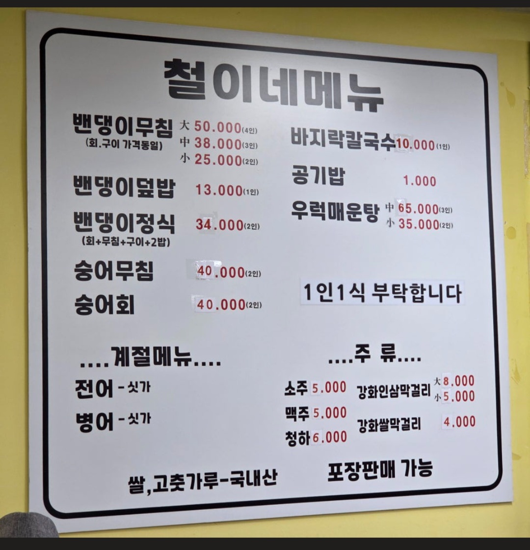 강화 풍물시장에 있는 철이네집에서 맛있는 점심을 먹습니다