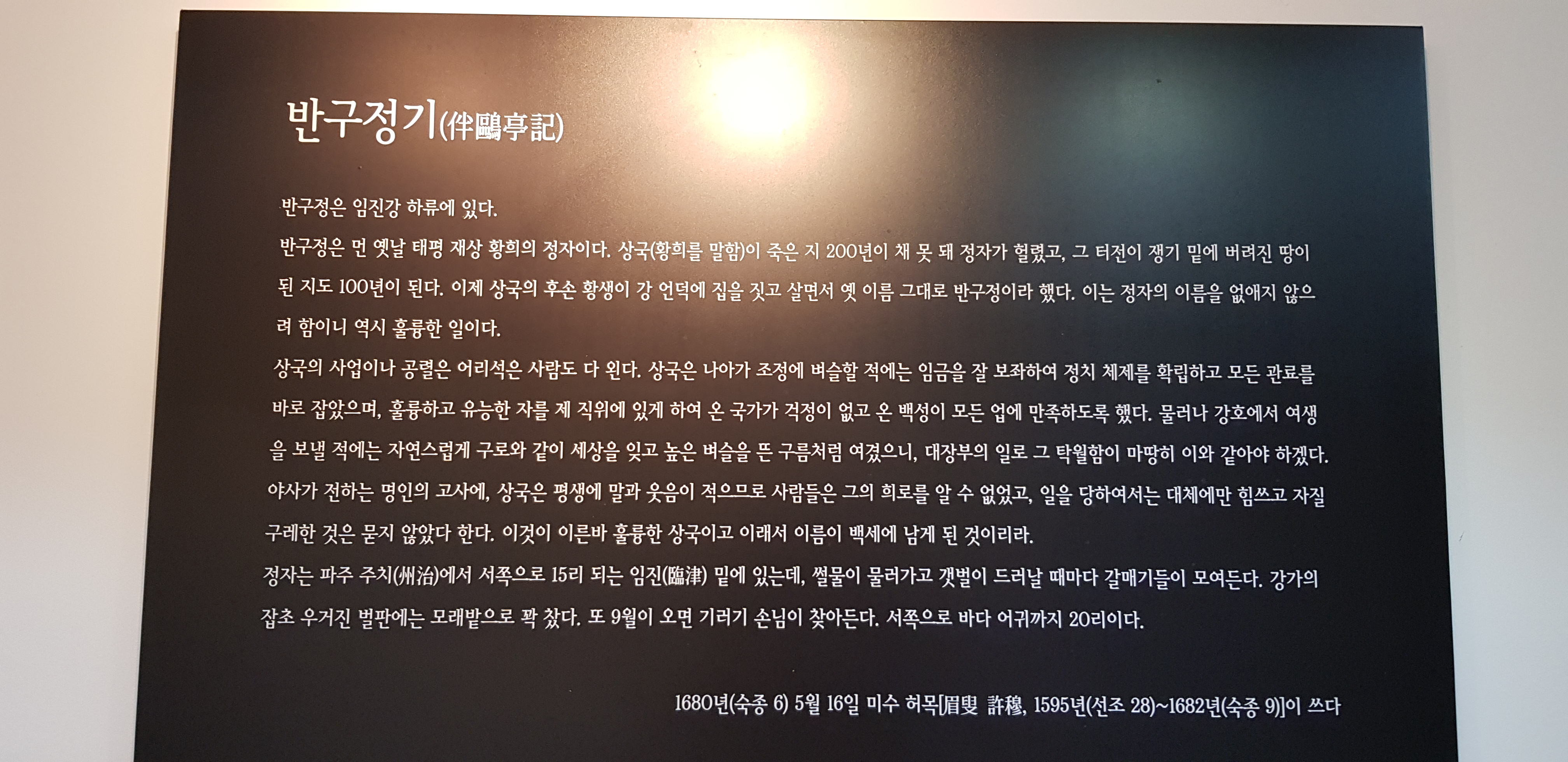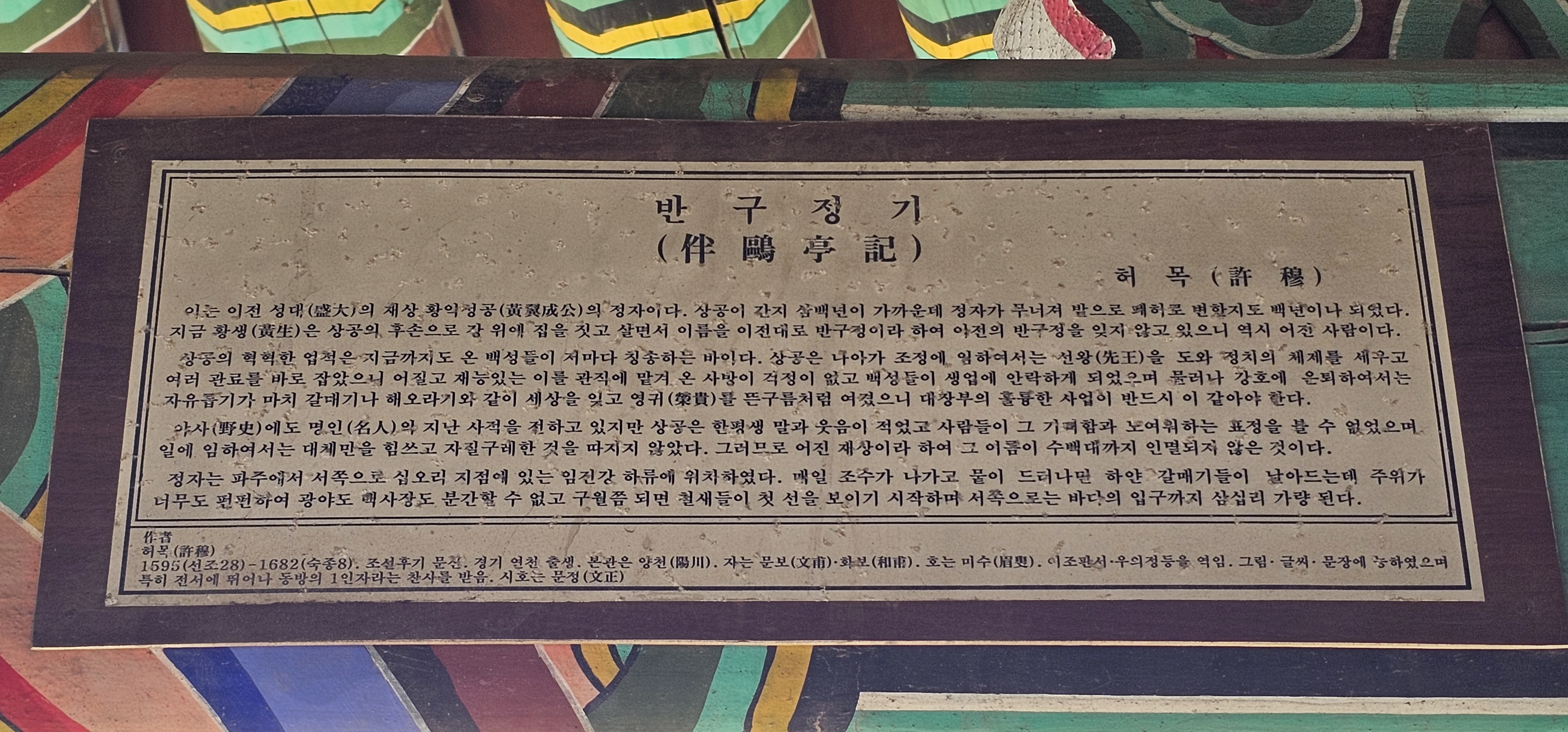 "반구정은 조선 세종 때 유명한 정승이었던 황희(1363∼1452)가 관직에서 물러나 갈매기를 친구 삼아 여생을 보내시던 곳이다.