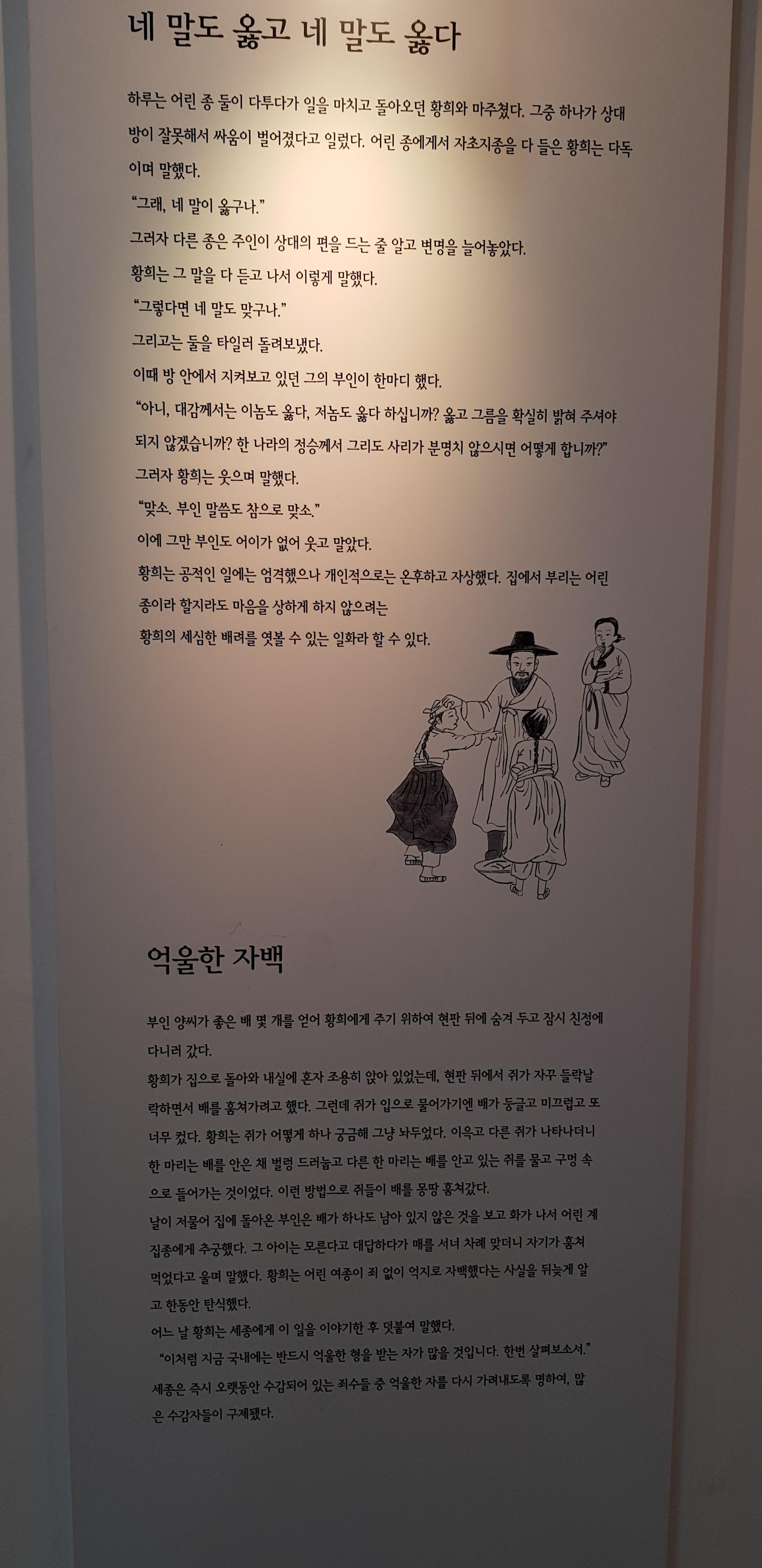 황희 정승의 자상함과 인간 존중을 엿볼 수 있는 일화입니다.