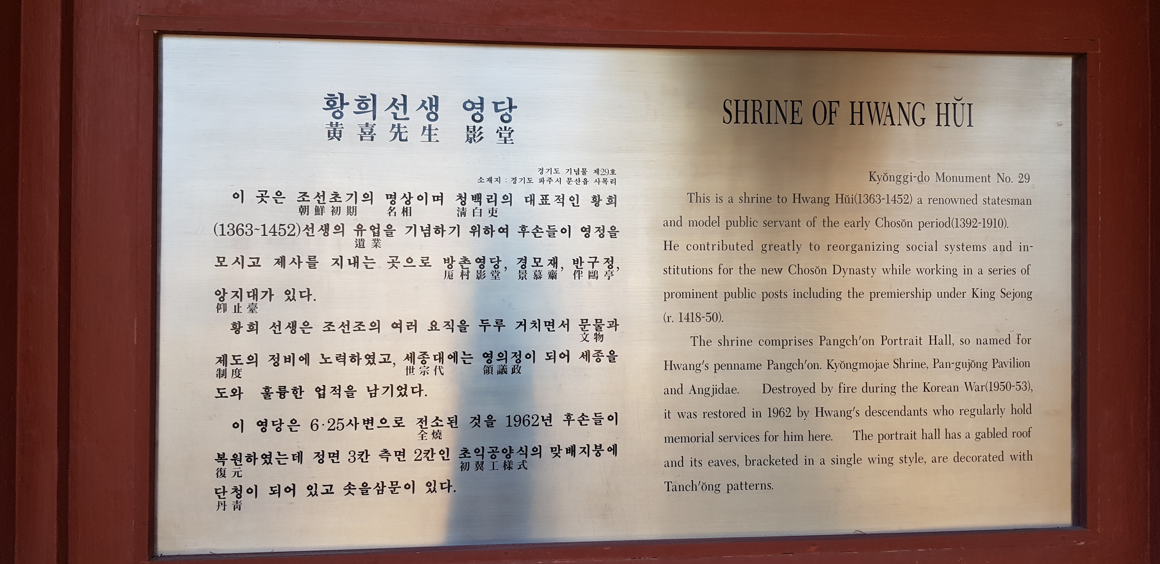 반구정은 황희 정승의 유적지로 위키백과에 의하면