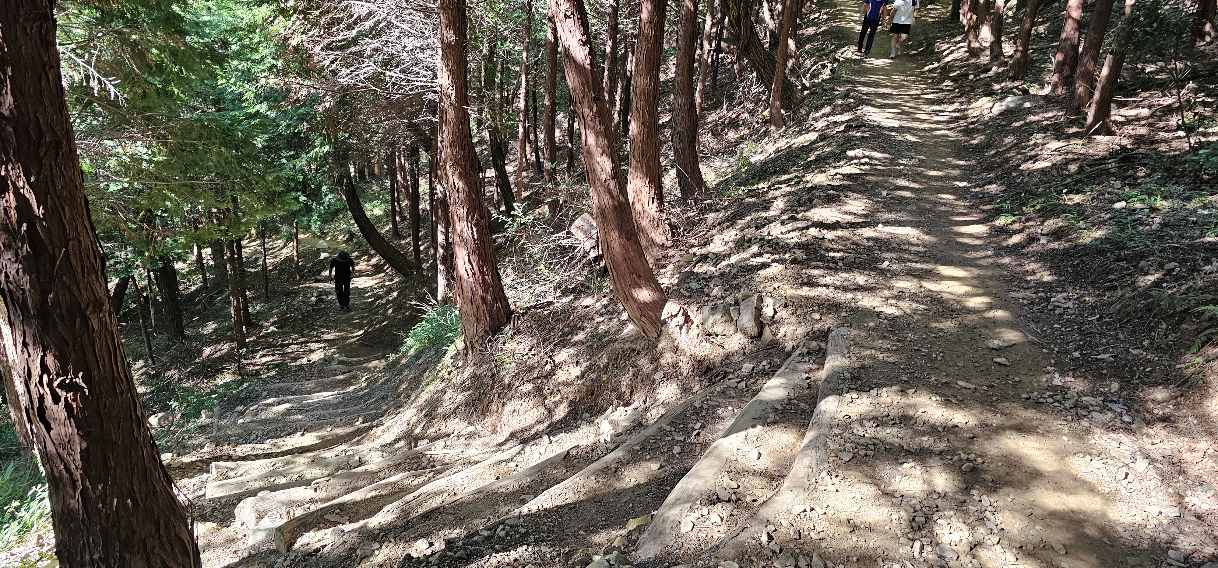 숲이 우거져서 산 아래는 전혀 보이지 않는다.